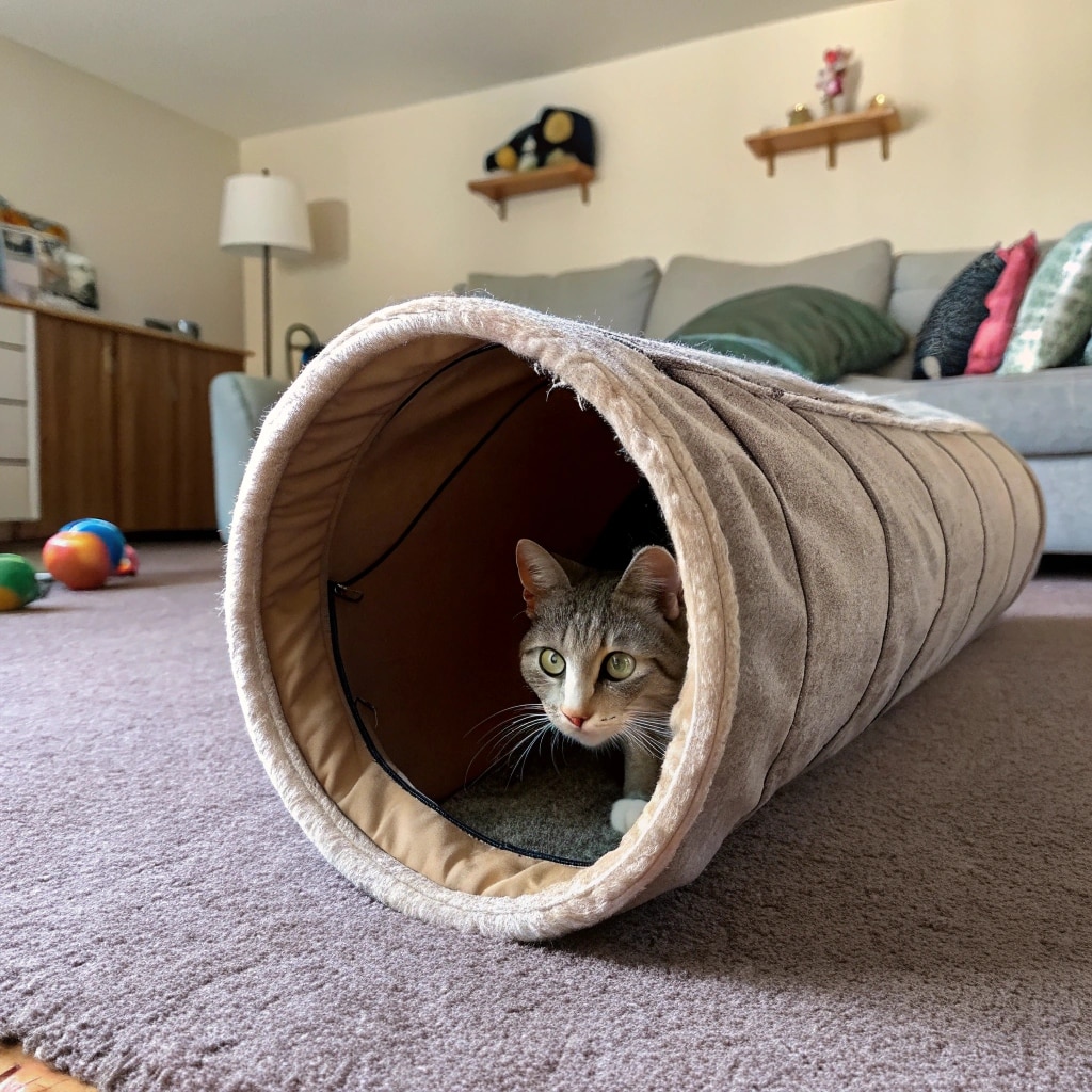 貓咪天生喜歡狹窄、隱蔽的空間,這能給牠們帶來安全感,同時也是牠們觀察和突襲獵物的理想場所。貓隧道或小型貓帳篷正好滿足了這一需求。牠們喜歡在隧道中穿梭、躲藏,然後突然跳出來「嚇唬」你或家中的其他寵物。這種躲貓貓式的遊戲充滿樂趣,也能激發貓咪的探索精神。